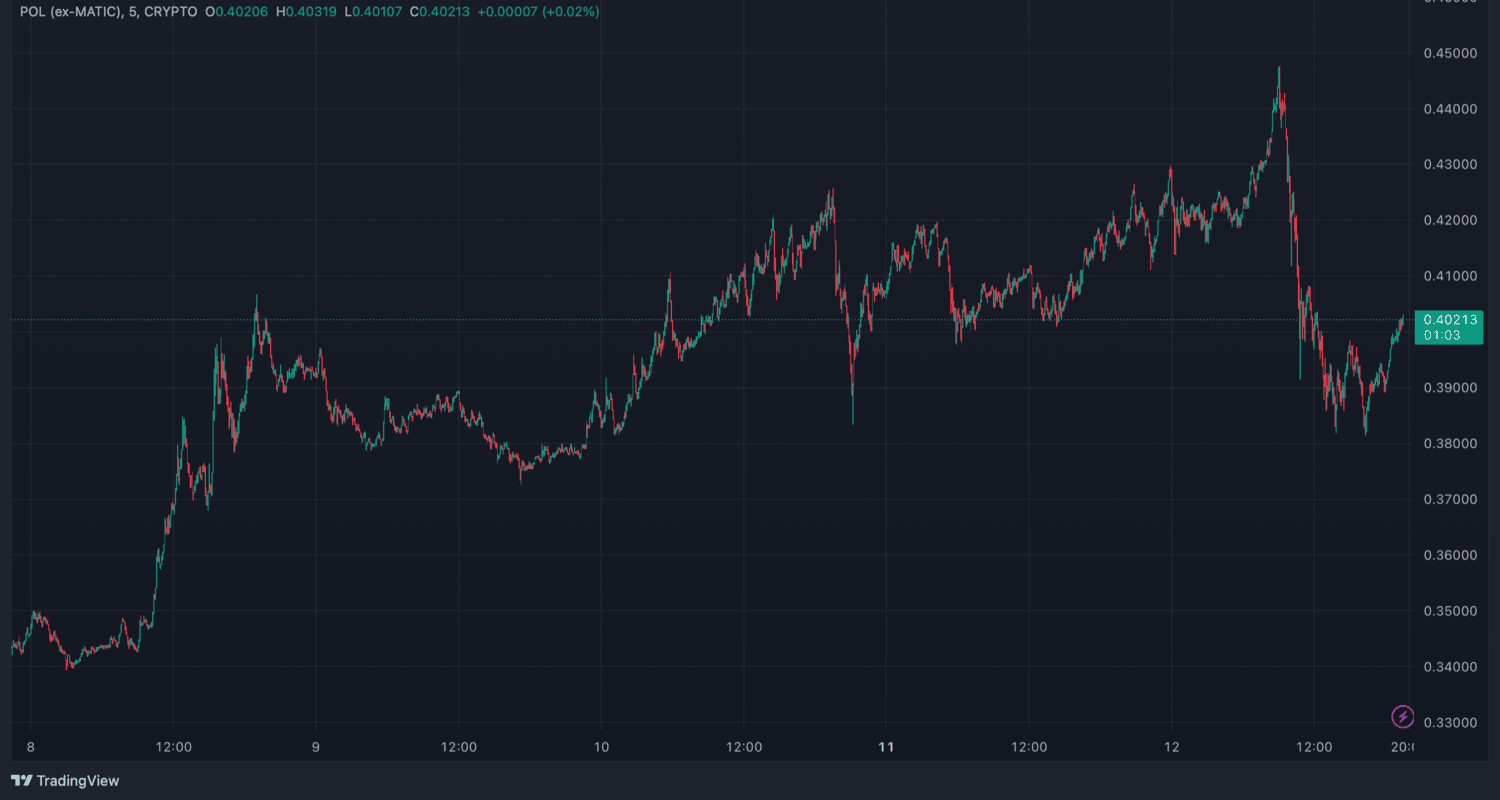 POL zaznamenal v poslednom čase významný cenový pohyb. Za posledný týždeň jeho cena vzrástla o 38,61 %, čo ukazuje silný záujem trhu. Za posledný mesiac hodnota mince vzrástla o 11,56 % a za šesť mesiacov o 9,86 %. V súčasnosti sa POL obchoduje medzi 0,32 a 0,46 dolára, čo odráža rastúci trend.