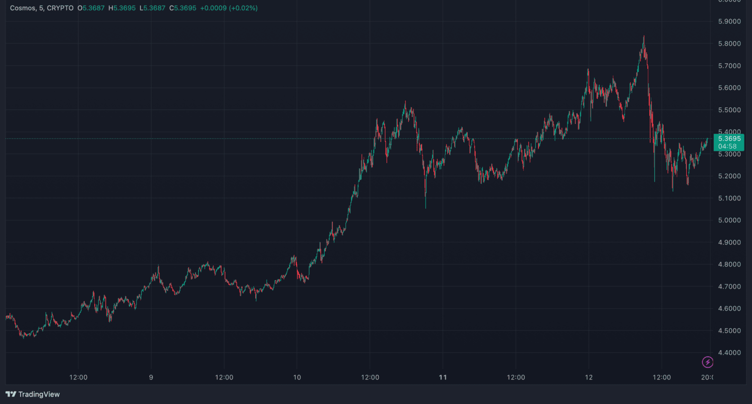 ATOM v posledných týždňoch prudko vzrástol, čím upútal pozornosť mnohých v kryptokomunite. Len za posledný týždeň jeho cena vyskočila o 37,21 % a za posledný mesiac stúpla o 27,28 %. Napriek tomuto pôsobivému krátkodobému rastu zostáva ATOM v porovnaní so šiestimi mesiacmi nižšie o 33,06 %, čo naznačuje, že sa zotavuje z predchádzajúcich miním.
