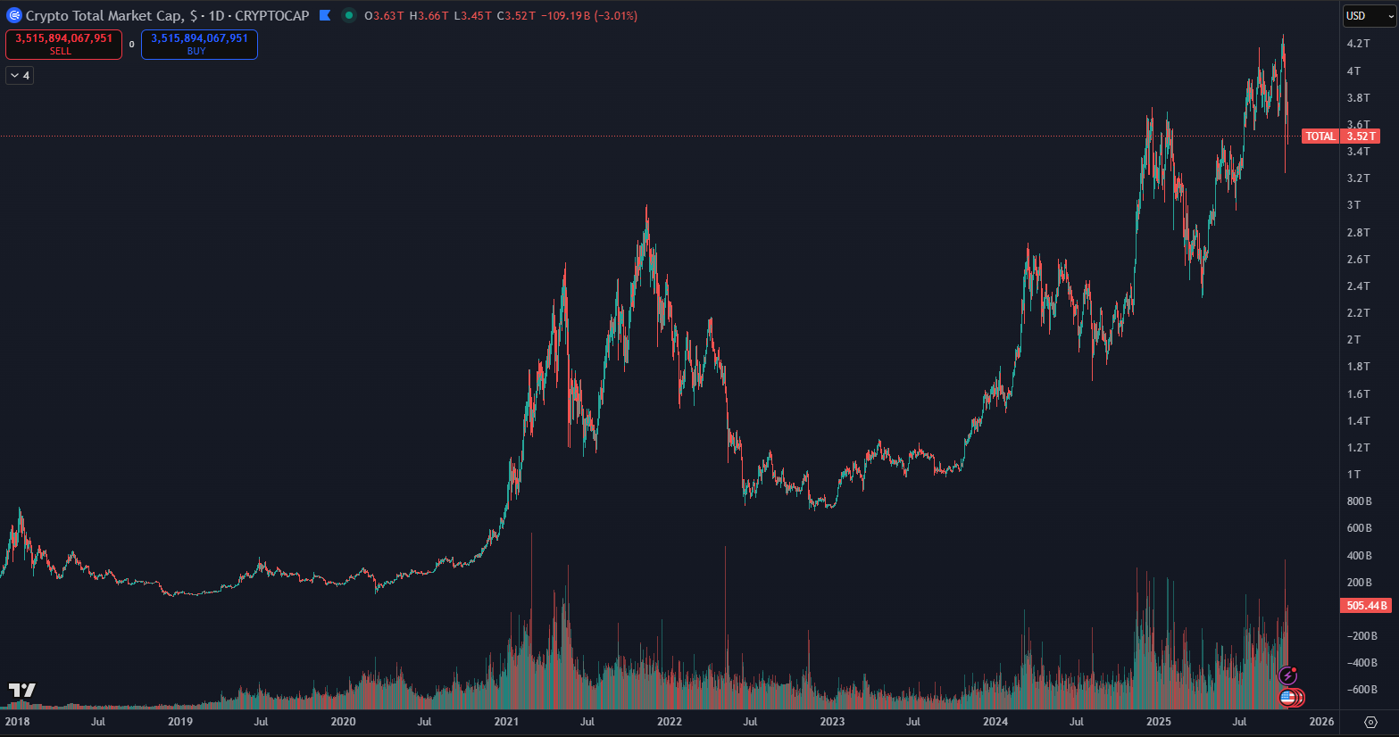 Hodnota kryptomien dlhodobo stúpa. Zdroj: tradingview.com