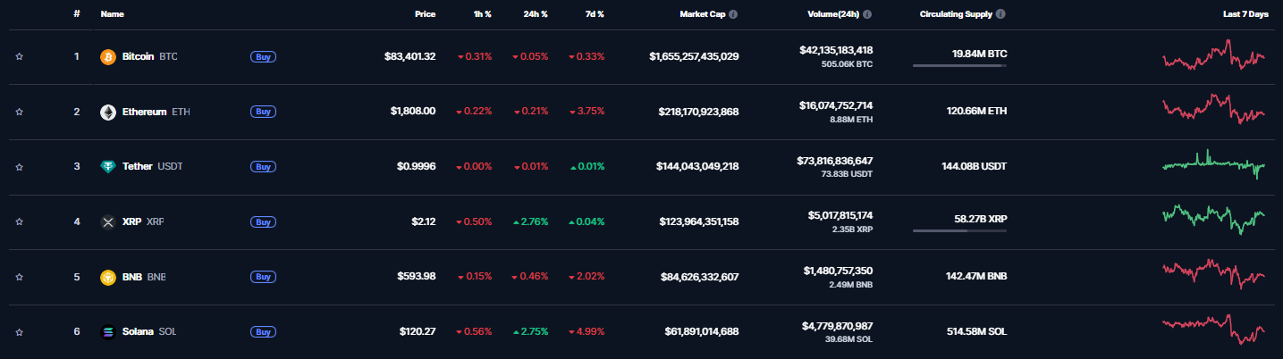 Najväčšie kryptomeny na svete. Zdroj: coinmarketcap.com