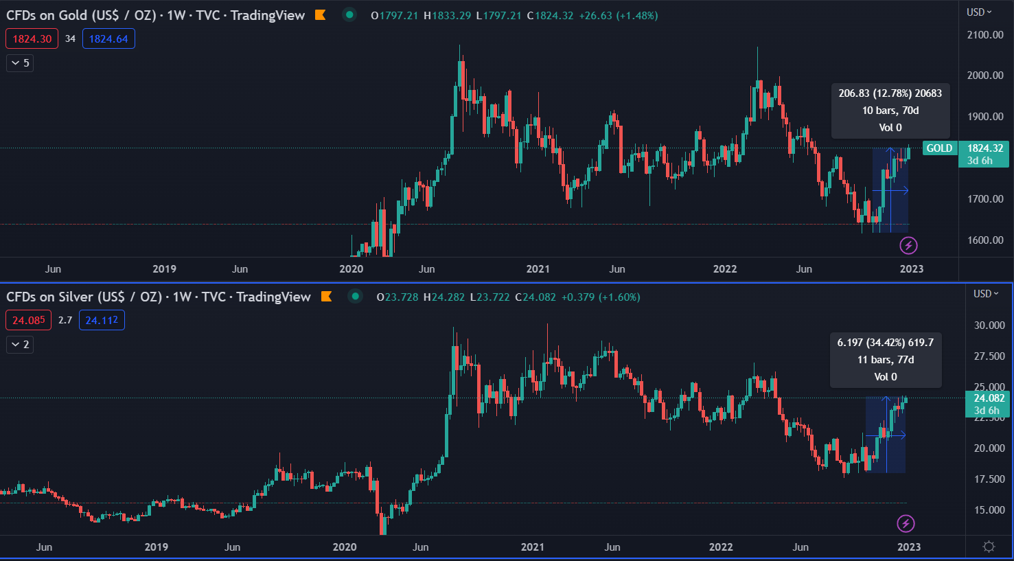Zdá sa, že v roku 2023 budú drahé kovy opäť rásť za predpokladu, že sa neobjavia nové a nepredvídateľné makroekonomické faktory, ktoré negatívne ovplyvnia ekonomiku.