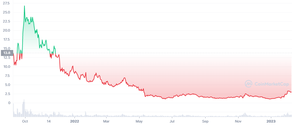 Cena jednej z najznámejšich DeFi kryptomien taktiež od dna zaznamenala významný 100 % zisk a dostala sa na niekoľko mesačné maximá. V dôsledku krachov kryptomenových spoločností z minulého roka môžeme očakávať, že DeFi futures burzy sa budú dostávať stále viac do povedomia. To sa neskôr prejaví aj na cenovom vývoji natívnych tokenov.