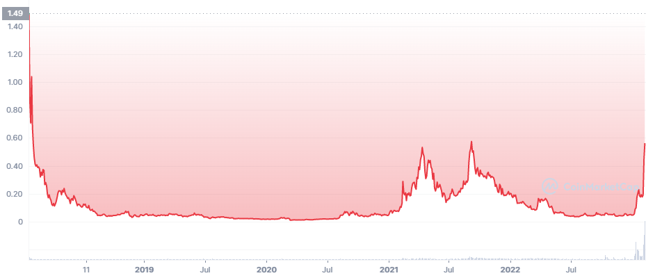 SingularityNET zaznamenal veľký rast až počas tohto roka, kedy umelá inteligencia sa dostáva výrazne do popredia. Z 5 centov sa veľmi rýchlo dostal na hodnotu 50 centov. A kedže AI technológia je iba vo svojom zrode, tak rast môže naďalej pokračovať.