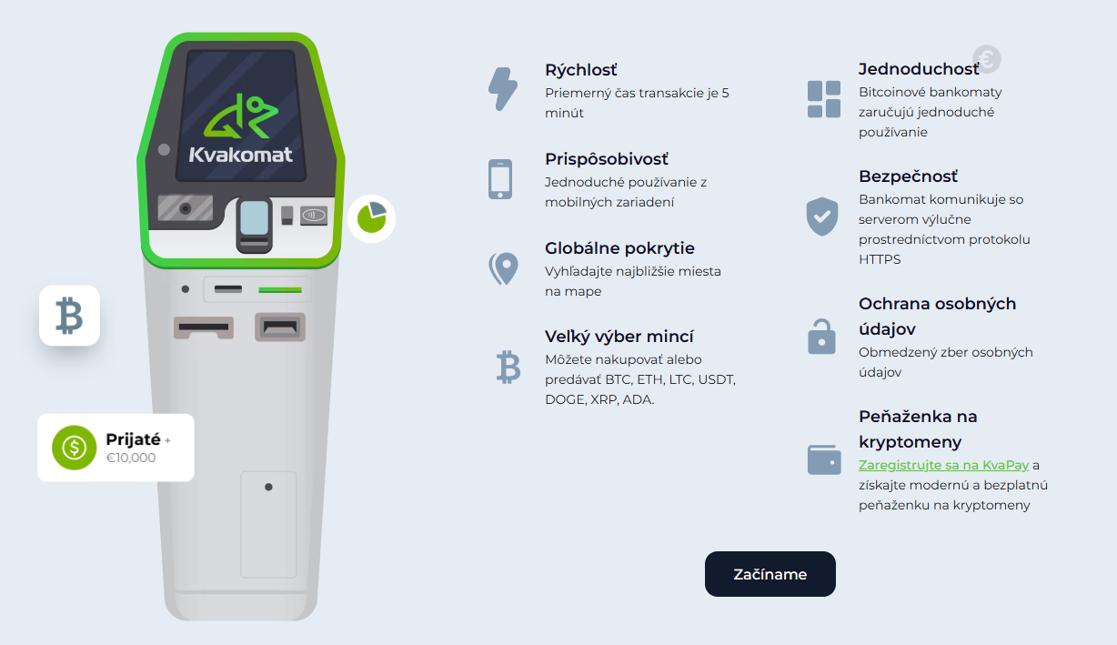 - Jednoduchý spôsob nákupu kryptomien cez fyzický bankomat Kvakomat.
