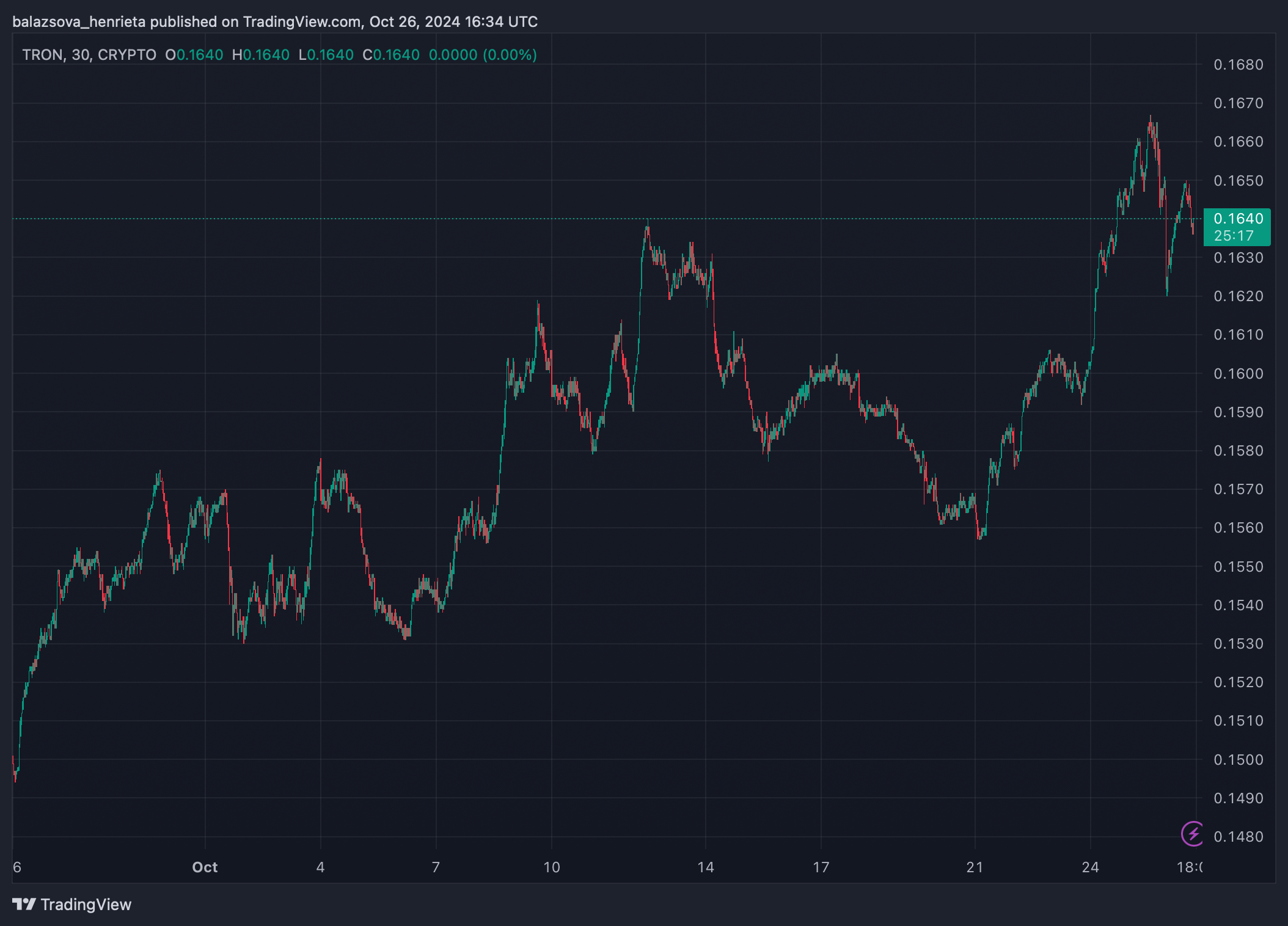 TRON (TRX) sa obchoduje medzi 0,15 a 0,16 dolárov, vykazujúc stabilný rast za posledných šesť mesiacov so ziskom 38,63 %. Minca sa blíži k svojmu najbližšiemu odporu na úrovni 0,17 dolárov, kľúčovej úrovni na sledovanie. Relatívny index sily je na úrovni 76,54, naznačujúc silný nákupný momentum. Ak TRX prelomí 0,17 dolárov, mohol by vidieť ďalšie zisky. Pozitívna úroveň MACD podporuje tento býčí výhľad. S mesačným nárastom o 9,77 % je TRON dobre postavený pred blížiacou sa sezónou altcoinov. Obchodníci sú optimistickí, že TRX by mohol výrazne vzrásť, ak prekoná súčasné úrovne odporu. Výkon mince naznačuje, že môže pokračovať vo svojom vzostupnom trende na rastovom trhu.