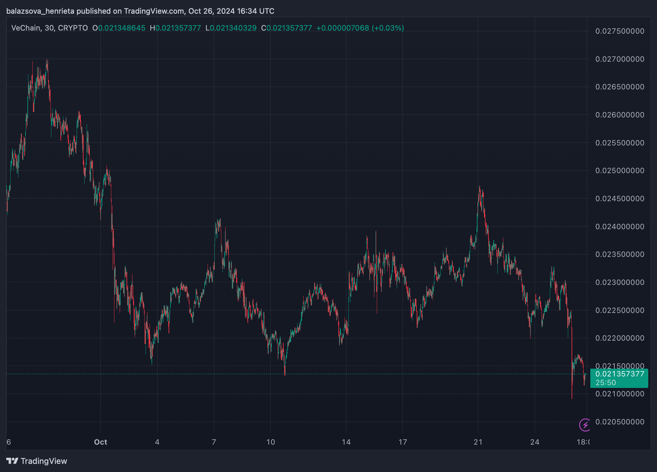 VeChain (VET) sa obchoduje medzi 0,0224 a 0,0254 dolárov, vykazujúc známky konsolidácie pred potenciálnym vzostupným pohybom. Relatívny index sily je na úrovni 46,60, naznačujúc neutrálny momentum s priestorom pre rast. Nízka hodnota Stochastic 16,88 naznačuje, že aktívum môže byť prepredané a pripravené na odraz. 10-dňové a 100-dňové jednoduché kĺzavé priemery sa zarovnávajú okolo 0,0230 dolárov, naznačujúc možnú zmenu trendu. Prelomenie nad najbližší odpor na úrovni 0,0266 dolárov by mohlo vidieť VET cieliť na ďalšiu úroveň 0,0296 dolárov, čo by predstavovalo nárast o viac ako 15%. S blížiacou sa sezónou altcoinov by VeChain mohol zaznamenať významné zisky.