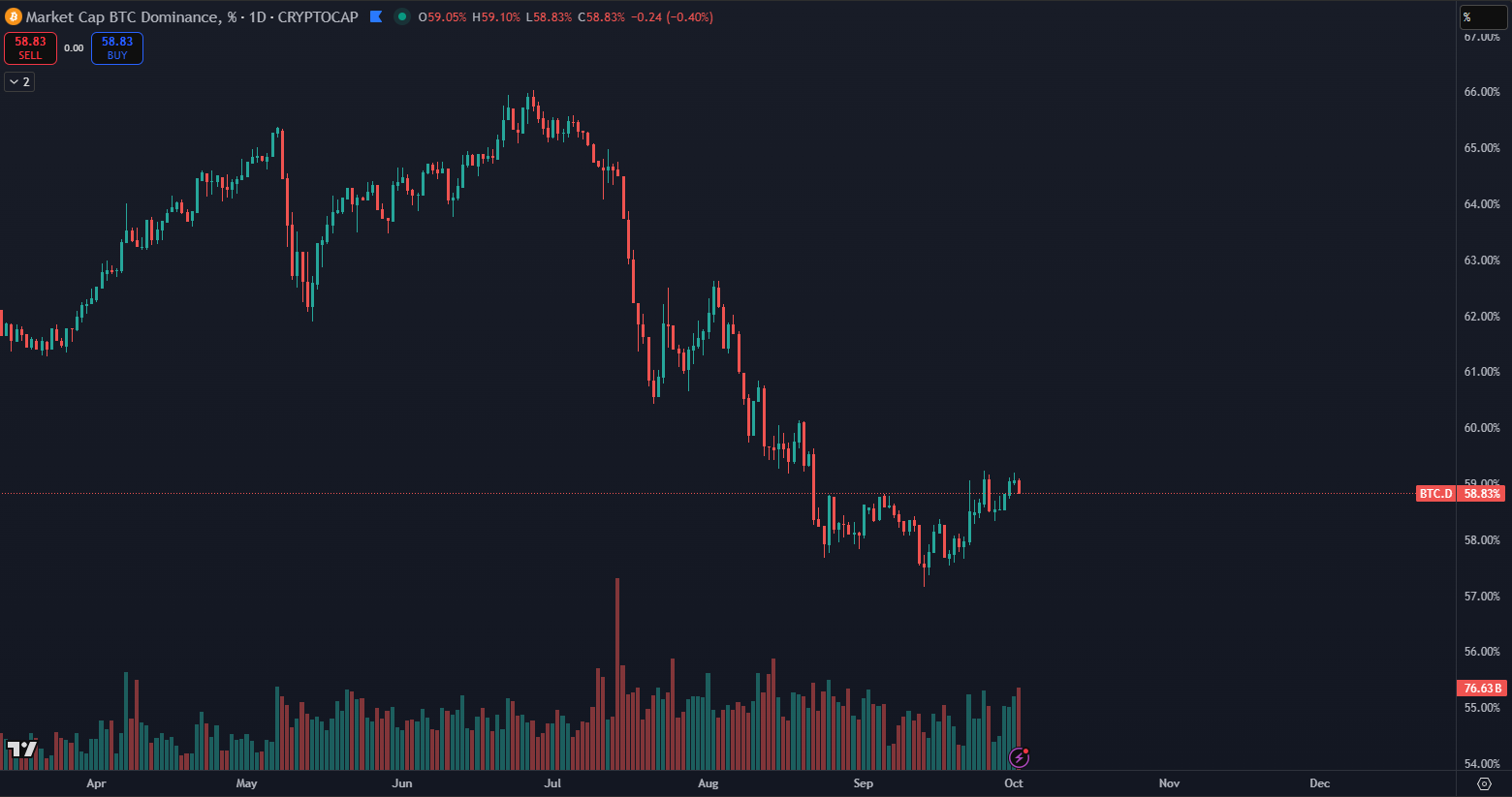 Dominancia Bitcoinu sa v tomto období pravdepodobne zvýši, pretože väčšina kapitálu aj záujmu sa sústredí práve naň. V praxi to znamená, že rast altcoinov môže byť dočasne utlmený, keďže investori budú hľadať istotu v najväčšej kryptomene. Psychologický efekt nového maxima zohrá dôležitú úlohu. Altcoiny síce budú rásť, no väčšinou nie niekoľko násobne viac ako BTC.