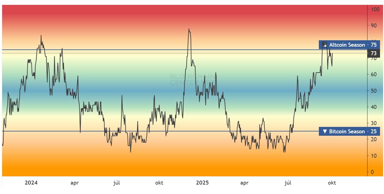 V tomto bode sa často rozvíja tzv. altcoinová sezóna, keď altcoinové indexy stúpajú na vysoké úrovne a dominancia BTC začína klesať. Tento presun kapitálu vytvára nové investičné príležitosti, ale aj zvýšenú volatilitu.