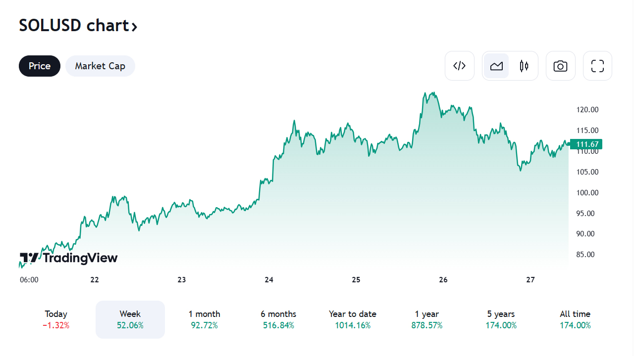 Objem obchodovania v Solane zaznamenal výrazný nárast, ktorý počas sviatočného víkendu presiahol šesť miliárd. To naznačuje veľký záujem a aktívne obchodovanie v rámci trhu. Napriek menším výpadkom zostáva celkový trend rastový, čo naznačuje robustné obchodné prostredie.
