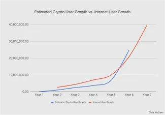 Nárast používateľov kryptomien vs. nárast používateľov internetu