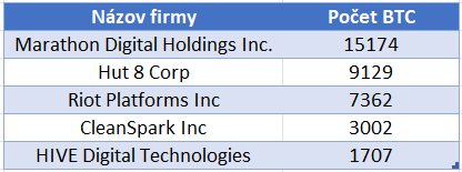 Medzi lídrami sú firmy Marathon Digital Holding, Hut 8, Riot Platforms, CleanSpark a HIVE Digital Technologies. Ich ťažba výrazne prispieva ku bezpečnosti siete BTC. Podľa držieb vidíme, že vysoký objem mincí si nechávajú v portfóliu, keďže veria v budúce zhodnotenie digitálneho aktíva.