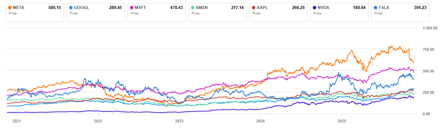Magnificent 7 naďalej zostáva skupinou spoločností, ktoré určujú smer technologického vývoja a celkovú náladu na finančných trhoch. Ich výsledky často rozhodujú o tom, či trh posilní, alebo či prevládne opatrnosť. Spoločnosti výrazne investujú do umelej inteligencie, budujú rozsiahlu infraštruktúru a snažia sa udržať si náskok v odvetví, ktoré sa mení rýchlejšie ako kedykoľvek predtým.