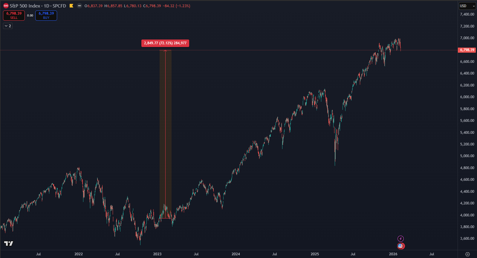 Index S&P 500 sa za posledné tri roky zhodnotil o približne 72 %, čo znamená, že pôvodná jednorazová investícia 10 000 eur dnes predstavuje zhruba 17 200 eur. K tomu treba pripočítať pravidelné mesačné investície, ktoré sa zhodnotili podobným tempom, a výsledná suma všetkých investícií dosiahla približne 33 300 eur.