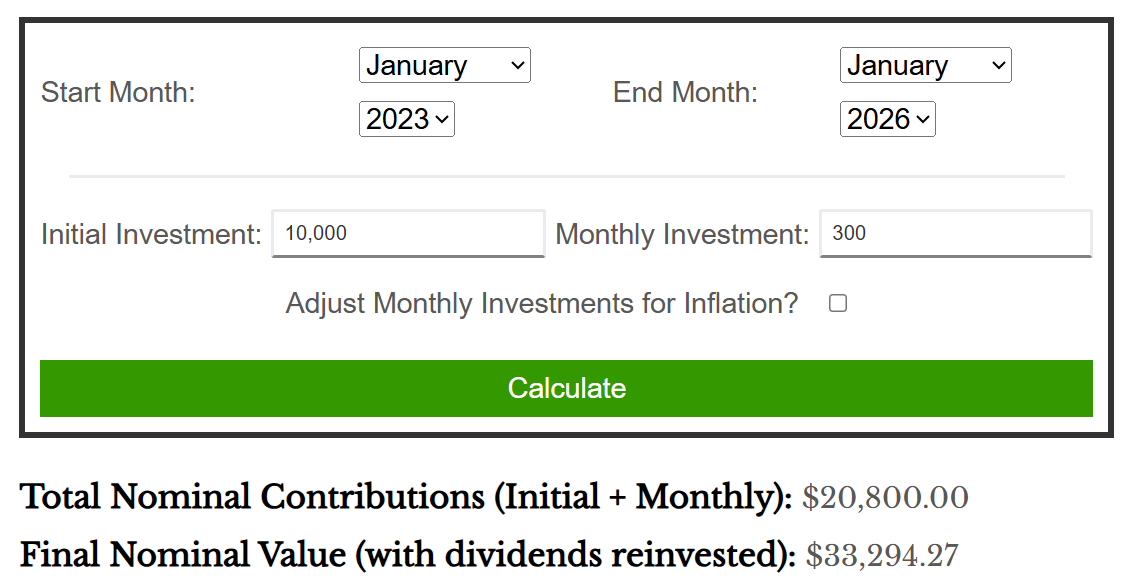Pred tromi rokmi, v januári 2023, sme sa rozhodli, že namiesto kúpy nového auta za 20 000 eur vložíme peniaze do akcií. Jednorazovo sme investovali 10 000 eur do indexu S&P 500 a zároveň sme zaviedli mesačné investície vo výške 300 eur. Tento prístup nám umožnil využiť potenciál rastu trhu a zároveň pravidelne zvyšovať investovanú sumu bez stresu z načasovania trhu.