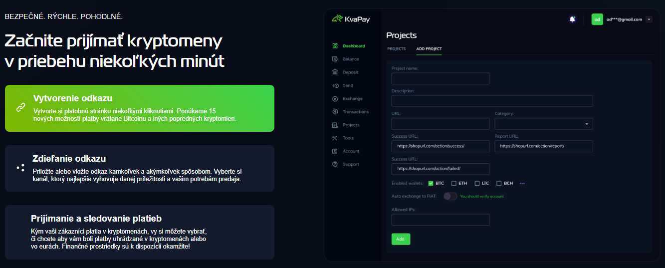 - KvaPay ponúka rýchle a jednoduché kryptomenové platby.