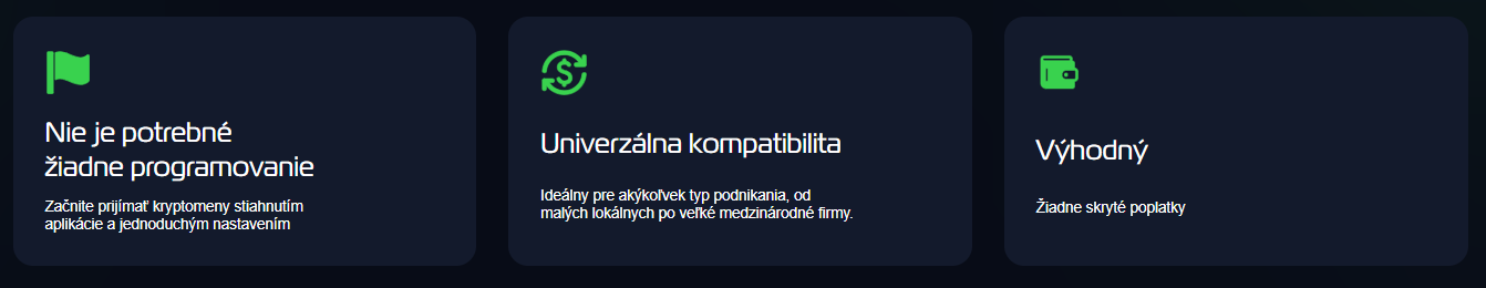 - Výhody pre slovenských používateľov sú v rýchlosti a nízkych poplatkoch.