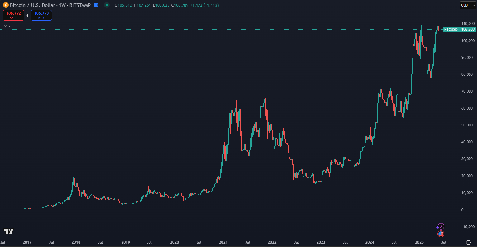 Bitcoin dlhodobo rastie na hodnote. Zdroj: tradingview.com