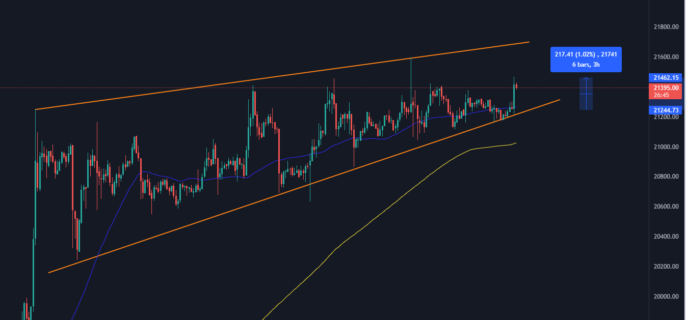 BTC sa v čase písania tohto článku pohyboval na úrovni 21 419 dolárov, po tom čo reagoval na ekonomické údaje z USA. Konkrétne boli zverejnené výsledky o indexe cien výrobcov, ktorý je významný pre celkový stav inflácie a taktiež report o maloobchodných tržbách v USA. Bitcoin okamžite po zverejnení reagoval nárastom o viac ako 1 % a to len v priebehu niekoľkých minút.
