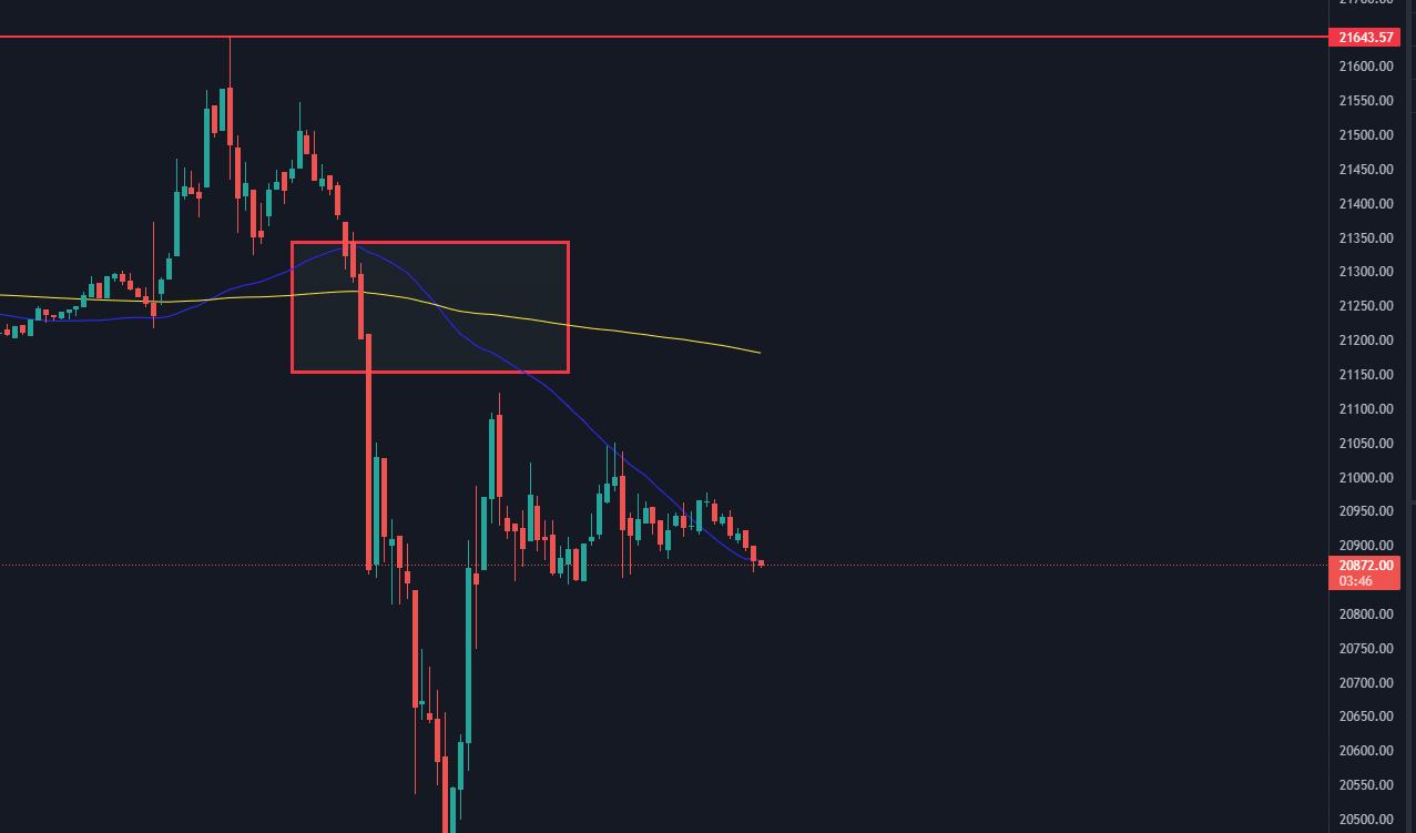 Pokračovanie rastu opäť narazilo na prudký odpor predajcov na úrovni 21 643 dolárov. Následne prišiel výraznejší pokles podporený tzv. krížom smrti. BTC padol až na 20 350 dolárov, odkiaľ sa však dokázal odraziť späť na hranicu 20 800 dolárov.