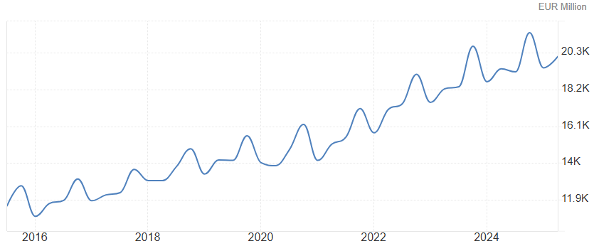 Disponibilný osobný príjem na Slovensku zaznamenal podľa TradingEconomics nárast na 20 086,68 milióna eur v druhom štvrťroku 2025, čo predstavuje výrazné medzištvrťročné zlepšenie oproti 19 440,12 milióna eur v prvom štvrťroku. Napriek rastu disponibilného príjmu však reálna kúpna sila domácností stagnuje.