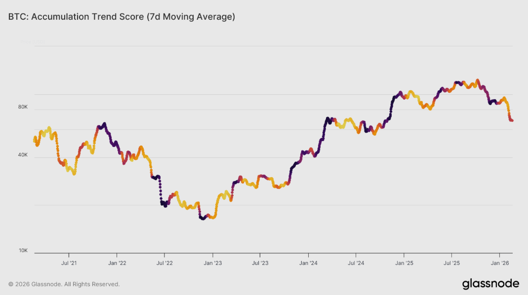 Dĺžka súčasného obdobia bez jasného trendu závisí najmä od toho, či kupujúci zvýšia svoju aktivitu. Na meranie tohto správania analytici používajú ukazovateľ Skóre akumulácie, ktorý sleduje zmeny zostatkov v peňaženkách a väčšiu váhu priraďuje veľkým investorom.