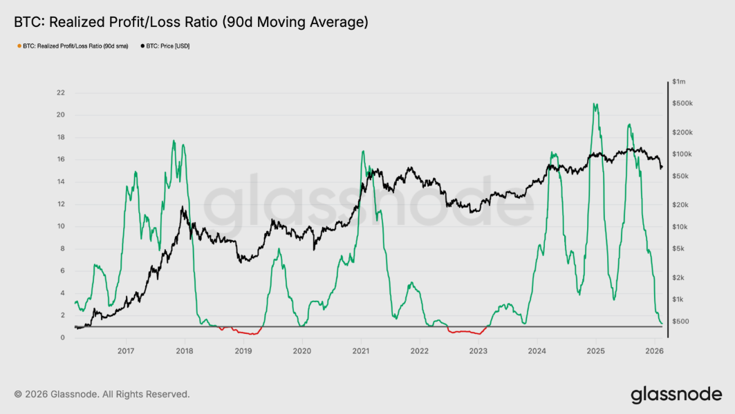 Okrem akumulačného správania investori sledujú aj širšie podmienky likvidity. Pomer realizovaných ziskov a strát patrí medzi dôležité metriky, pretože porovnáva objem realizovaných ziskov a strát v dolárovom vyjadrení. Tento ukazovateľ pomáha odhadnúť, či do trhu prúdi nový kapitál alebo prevládajú straty.