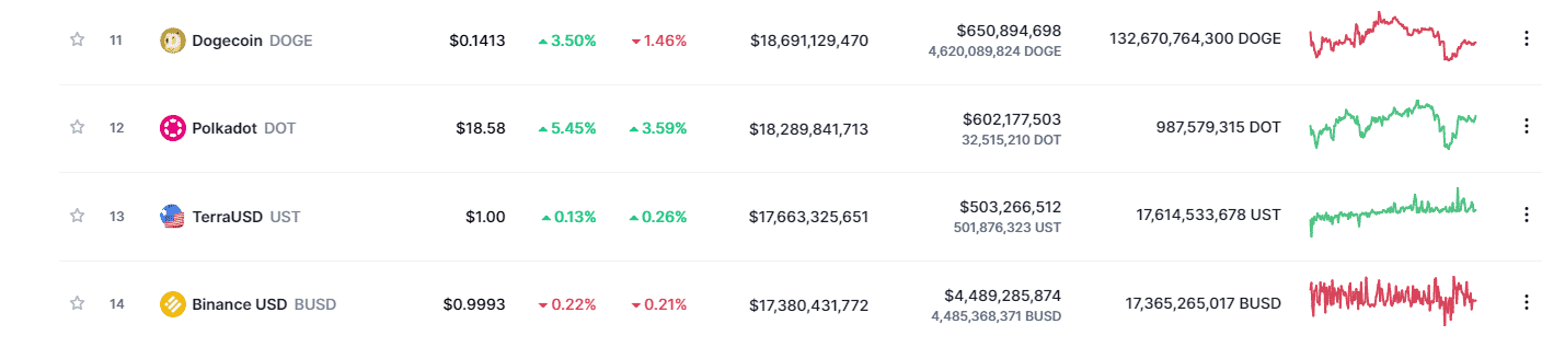 Veľké pokroky dosiahol aj stablecoin spoločnosti Terra – UST. Tomu sa podarilo dosiahnuť naozaj obdivuhodný výsledok. Medzi stablecoinami mu patrí tretia priečka. Dokázal totiž predbehnúť stablecoin BUSD kryptomenovej burzy Binance.