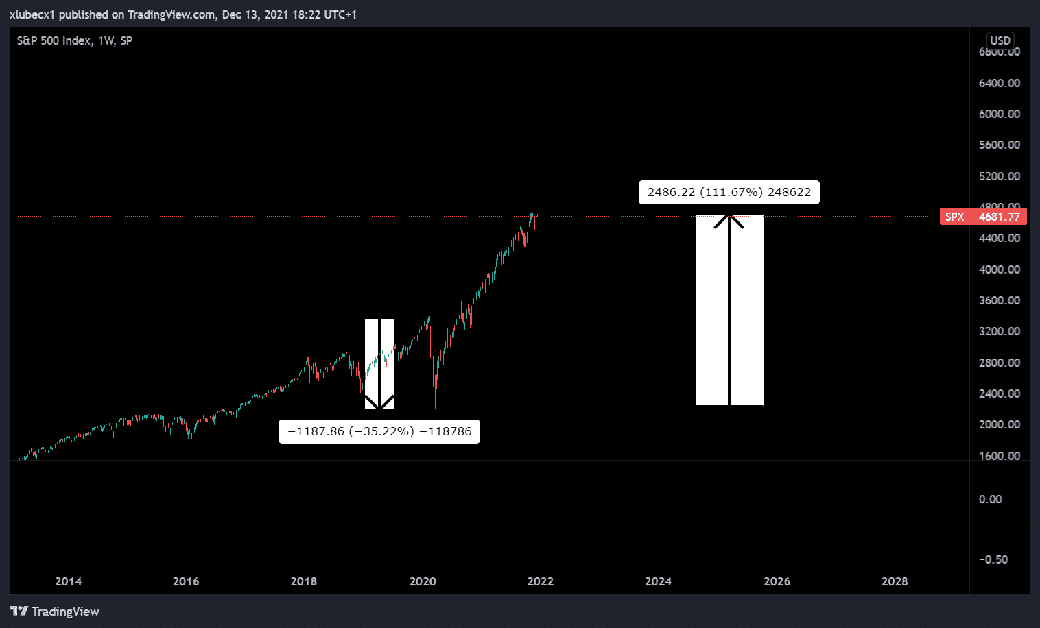 Tým, že sa nalievajú veľké peniaze do ekonomiky, tak keď sa pozrieme na niektoré grafy, môžeme jasne usúdiť, že na krízu sa už dávno zabudlo. Najväčšie akciové indexy od svojho nedávneho dna z marca 2020 urobili už viac ako 100 % zhodnotenie. SPX500 ako najväčší akciový index vzrastie priemerne každý rok o 10 %.