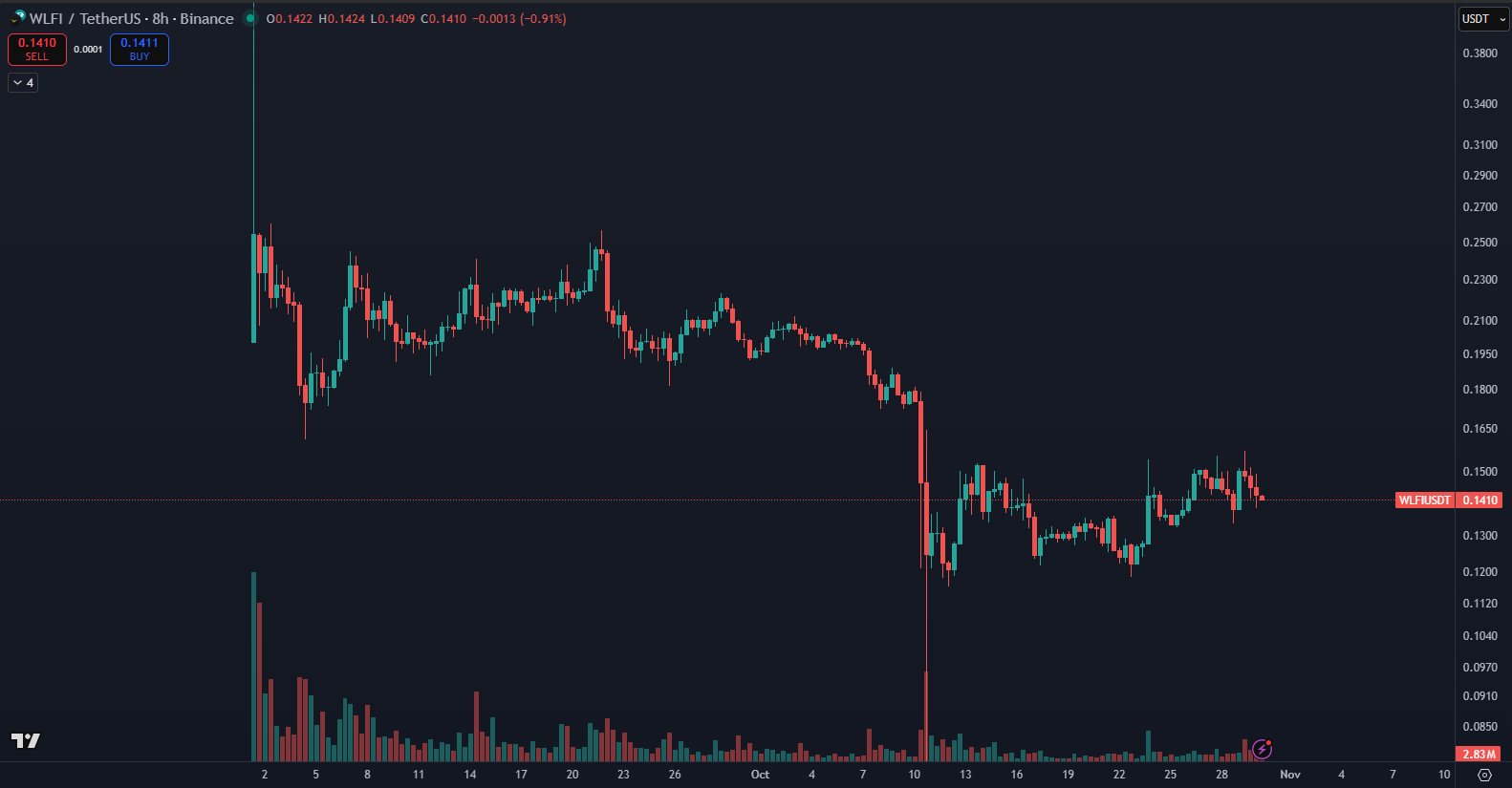 Pri spustení obchodovania 1. septembra cena tokenu vzrástla z 0,31 dolára na 0,46 dolára, no následne klesla približne o 65 % a dnes sa pohybuje okolo 0,14 dolára, ukazujú údaje z TradingView. Predaj tokenov a príjem pre rodinu však pokračujú.