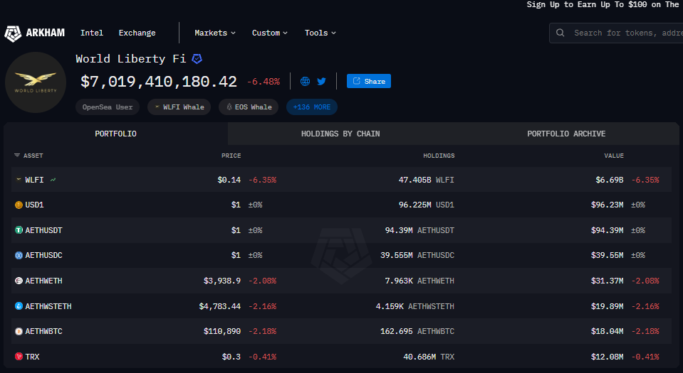 Hodnota WLFI. Zdroj: intel.arkm.com
