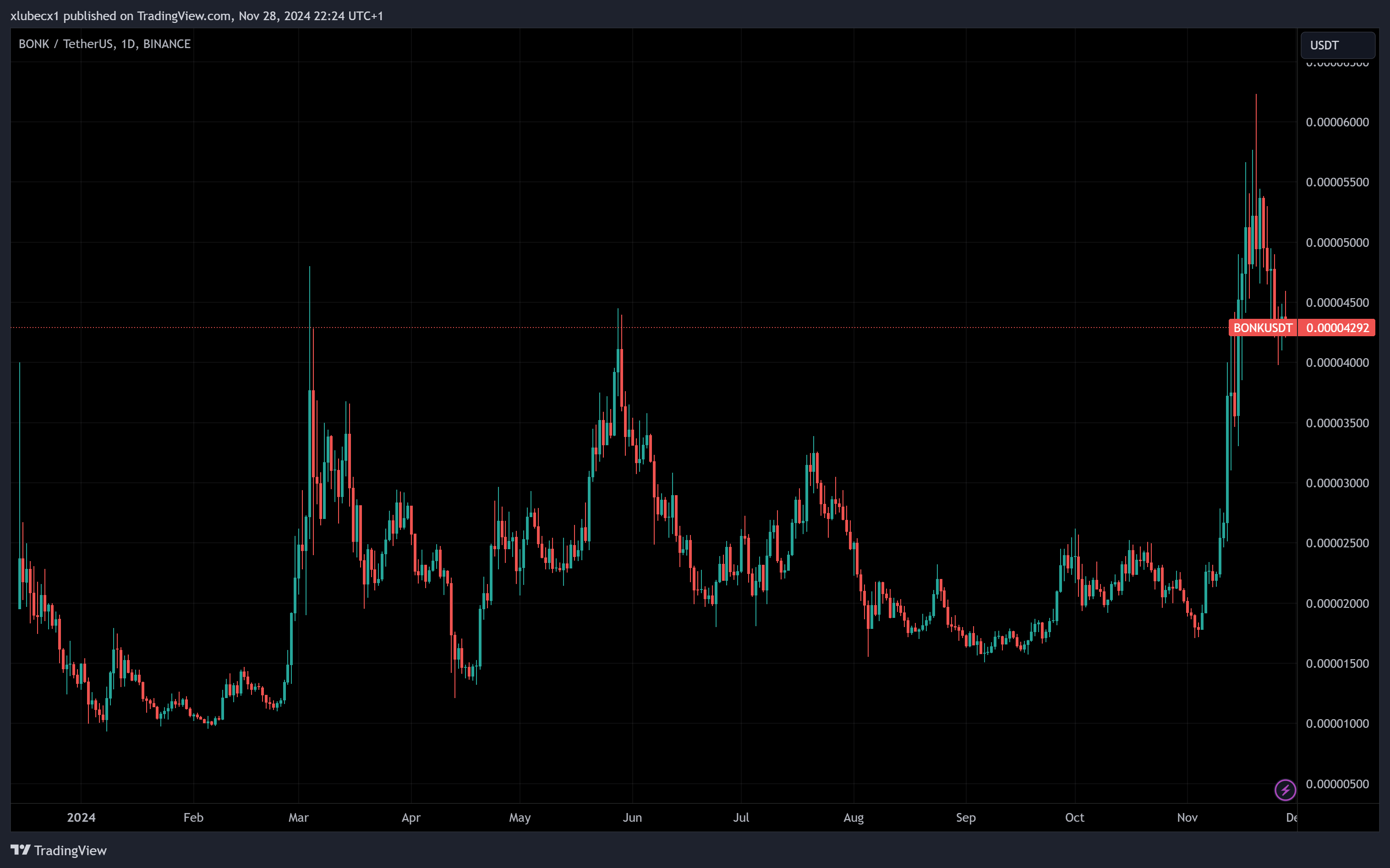 Bonk (BONK) vzrástol za posledný týždeň o viac ako 18 % a predbehol Dogwifhat ako štvrtá najväčšia meme kryptomena na trhu s trhovou kapitalizáciou 3,7 miliardy dolárov. V čase písania sa Bonk predáva za 0,000049 dolárov, čo predstavuje mierny denný pokles o 3,2 %, keďže vstúpil do fázy ochladenia. Tento nedávny nárast ceny Bonku prišiel hneď po listingu na burze UpBit, ktorý ďalej rozšíril prítomnosť Bonku na trhu.