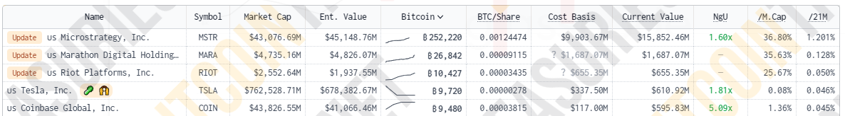 Podľa rebríčka Bitcoin Treasuries, MicroStrategy v súčasnosti vlastní 252 220 BTC, čo predstavuje približne 1,2 % celkovej ponuky Bitcoinov. Hodnota týchto držaných Bitcoinov presahuje 15 miliárd dolárov, pričom celkové náklady spoločnosti dosahujú približne 9,9 miliardy dolárov. Saylor verí, že Bitcoin je najvýkonnejším aktívom 21. storočia a predstavuje revolučnú formu digitálneho kapitálu.