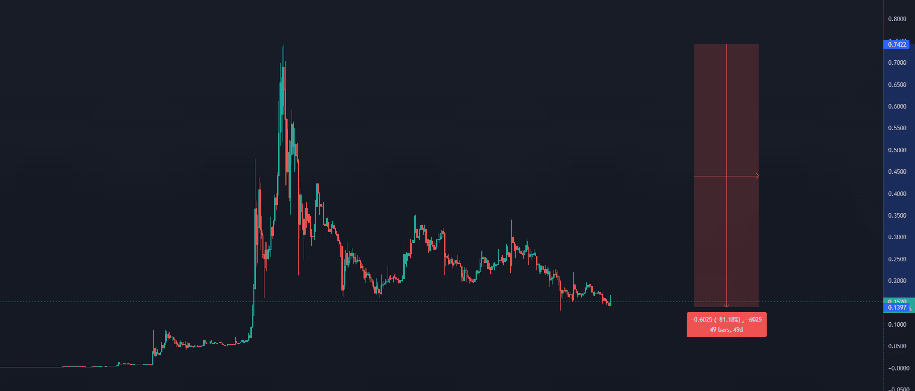 Podľa Cubana môže inflačná dynamika meme coinov výrazne zlepšiť ich ceny. S týmto tvrdením súhlasil aj šéf Tesly Elon Musk. Zdá sa však, že to projektu DOGE už nedokáže tak ľahko pomôcť. Tento psí projekt klesol až o 80 % zo svojho historického maxima, ktoré bolo zaznamenané ešte v máju 2021.