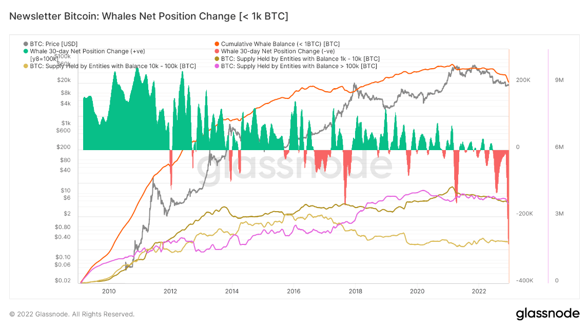 Za posledných 30 dní bitcoinoví milionári predali až 280 000 BTC a v súčasnosti držia približne 9 miliónov mincí z celkovej ponuky. Takáto vysoká mesačná hodnota v minulosti ešte nikdy nebola zaznamenaná a predstavuje významnú nedôveru majetných investorov, ktorá pravdepodobne súvisí s obavami z recesie a z neistej ekonomickej situácie.