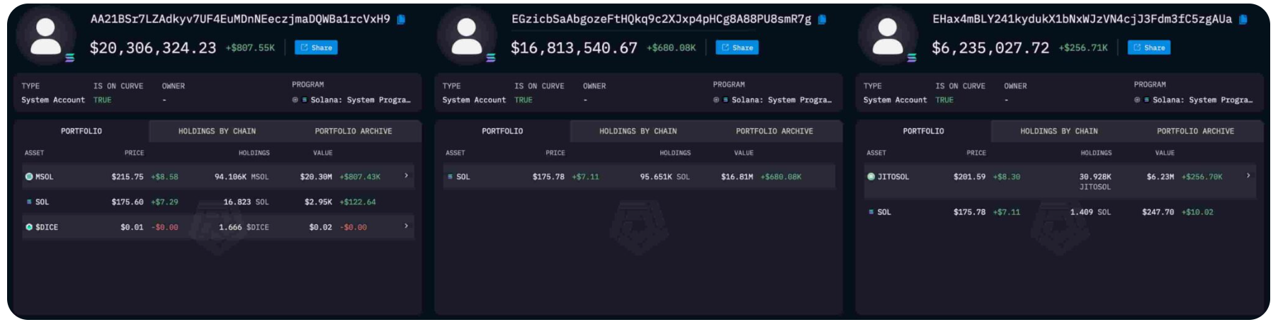V turbulentnom období, keď kryptomenový trh opäť zažíva významnú volatilitu a prudké cenové výkyvy, sa tri veľké adresy rozhodli nakúpiť Solanu v masívnom množstve. Podľa podrobnej analýzy z Lookonchain tieto adresy následne tokeny zastakovali prostredníctvom rôznych protokolov, čím jasne prejavili záujem o dlhodobé držanie aktív.