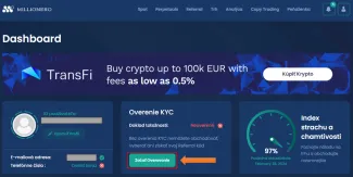 Teraz si ukážeme opäť v niekoľkých jednoduchých krokoch, ako prejsť procesom KYC. V podstate celá pointa je nahrať doklad totožnosti, aby burza overila vašu identitu. Po tomto procese už bude všetko pripravené na obchodovanie na platforme Millionero.