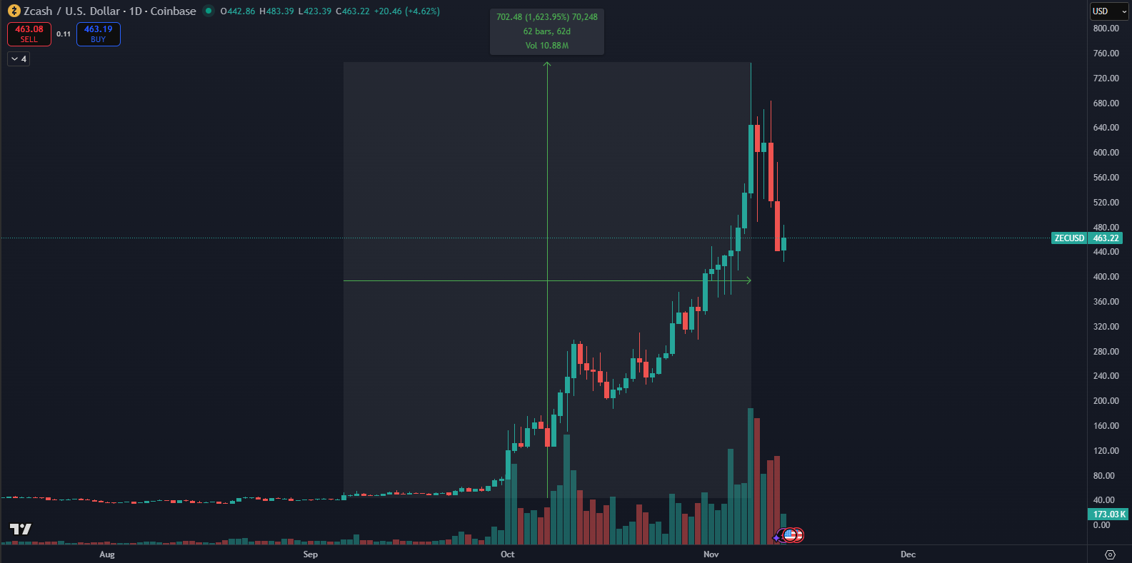 - Zcash vystrelil o 1 600 %, čím potvrdil silnú vlnu záujmu o súkromné projekty.