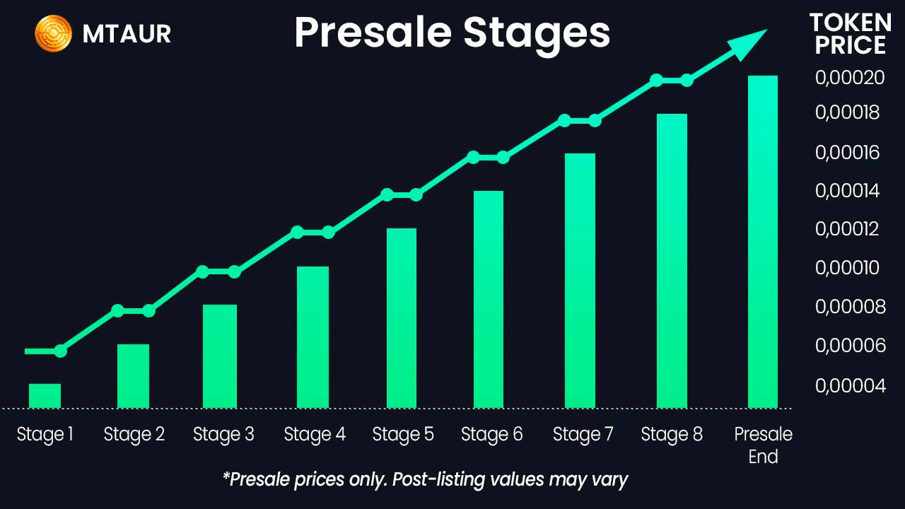 - Očakáva sa nárast ceny MTAUR tokenov v nasledujúcej fáze predpredaja.