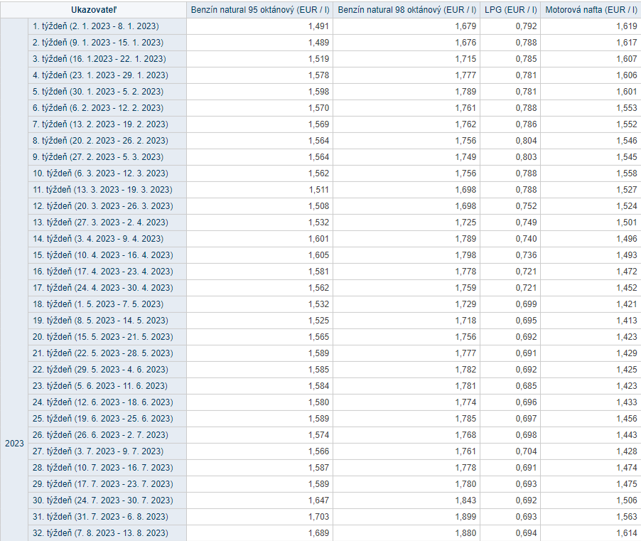 Na základe najnovších údajov Štatistického úradu sme boli v auguste zatiaľ svedkami len mierneho zvýšenia ceny benzínu. Na druhej strane, nafta posledné týždne prudko stúpa a opäť dobieha trh s benzínom. V súčasnosti tankujeme na Slovensku za nasledujúce ceny: