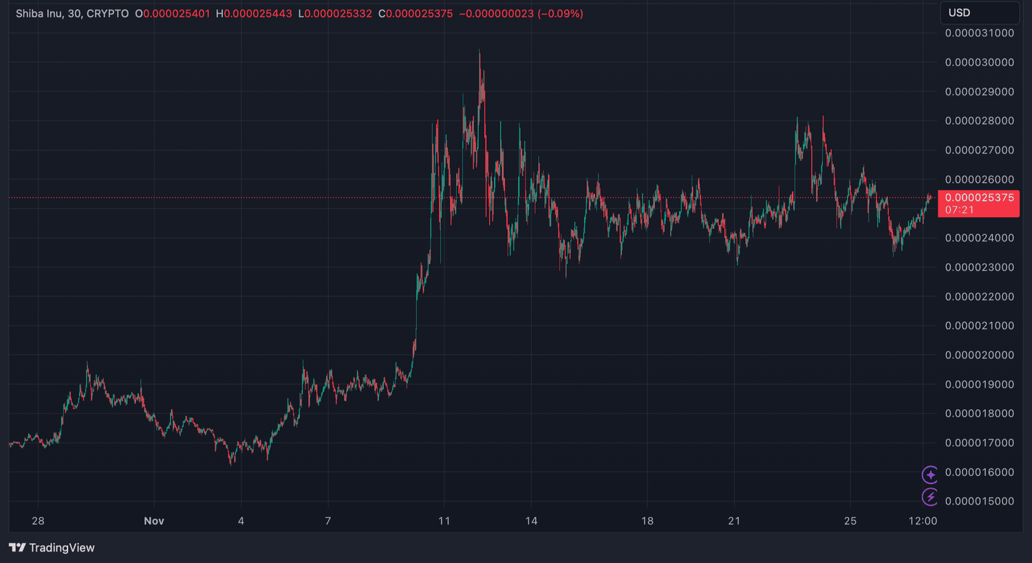 Shiba Inu zaznamenal výrazný návrat počas povolebného rastu zaznamenaním 53,36 % ziskov. Keďže Shiba Inu tiež znížil svoj obežný objem z 999 biliónov na 410 biliónov, je pravdepodobné, že vzostupný trend Shiba Inu bude pokračovať až do konca Q4.
