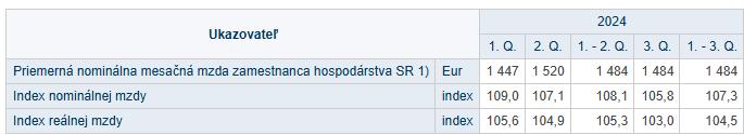 Priemerná mzda na Slovensku v 3. kvartáli 2024 dosahovala podľa údajov Štatistického úradu SR hodnotu 1 484 eur v hrubom, avšak reálna kúpna sila sa znižuje v dôsledku inflácie. Rast cien ovplyvňuje takmer všetky oblasti života, pričom najviac sa to prejavuje na bývaní, energiách a potravinách.