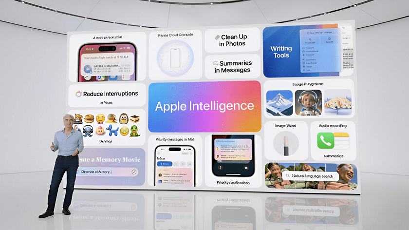 Medzi hlavné funkcie Apple Intelligence patria personalizovaná prioritizácia notifikácií, generatívne jazykové nástroje na prepis a opravu textu, generovanie obrázkov, vyhľadávanie objektov na fotkách alebo pokročilé interakcie s údajmi z e-mailov, kalendára a máp.