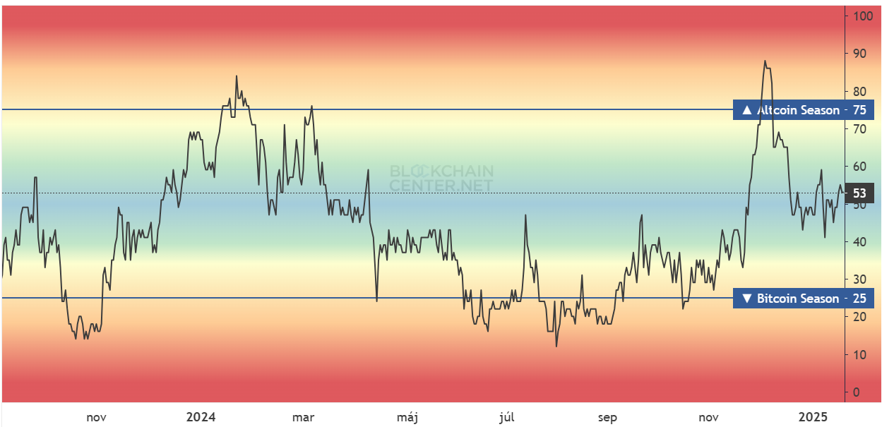 Index sezóny altcoinov. Zdroj: Blockchaincenter