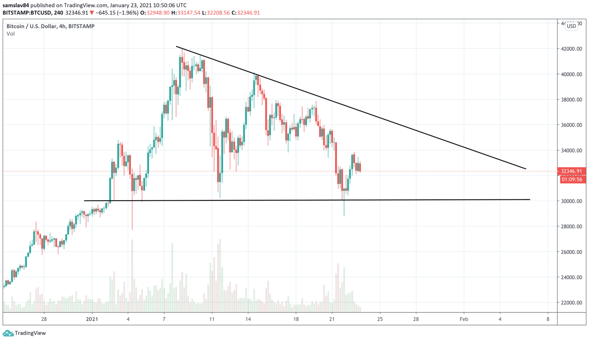 V tomto lokálnom downtrende môžeme ostať ešte relatívne dlho. Rozhodnúť sa v kľude môže až niekedy vo februári. V prípade, že by sme nakoniec definitívne padli pod 30 000 $, korekcia bude pokračovať a my dostaneme skvelé príležitosti na nákup.