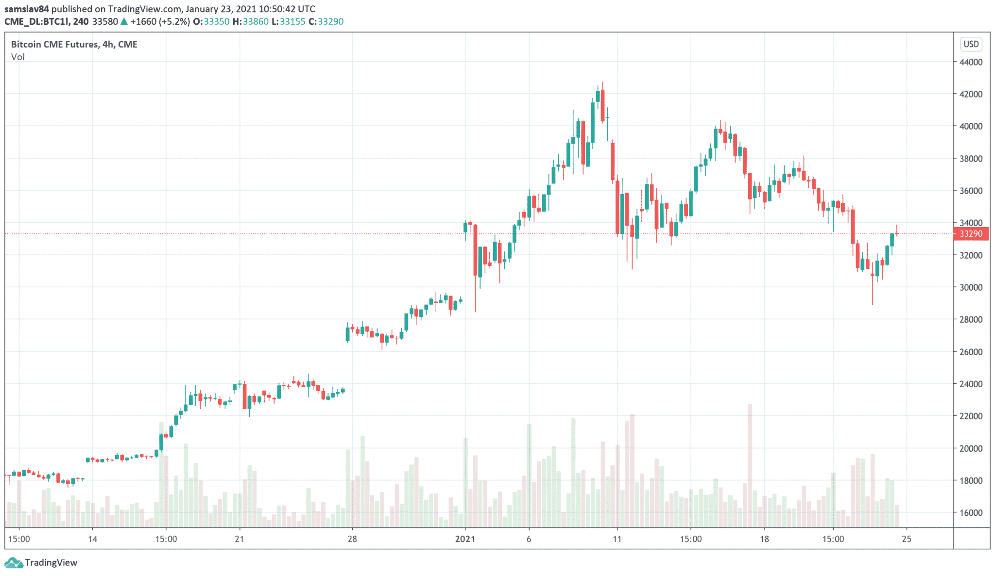 Bitcoin sa v decembri veľmi nezastavoval, takže nie je jasné, na ktorých cenách na nachádza väčšia likvidita, no z grafov môžeme vypozorovať nejaké supporty. Pomôže nám v tom aj graf Bitcoin futures kontraktov burzy CME, kde pozorujeme dva veľké gapy. V prípade, že bude korekcia pokračovať, pravdepodobne vyplníme aspoň ten väčší.