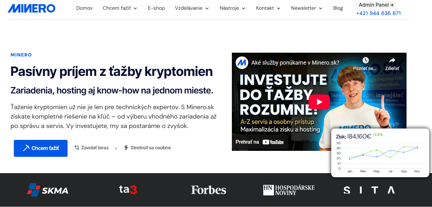 Ťažba kryptomien láka čoraz viac Slovákov, no domáca prevádzka ASIC minerov prináša samé problémy – horúci vzduch, preťažené zásuvky a nekončiace starosti. Firma Minero.sk tieto prekážky odstraňuje vlastným moderným datacentrom. Zákazníci tu nájdu profesionálne podmienky, kde stroje bežia naplno bez rušenia každodenného života. Okrem vlastného datacentra však Minero disponuje aj lacnejšou možnosťou v zahraničí.