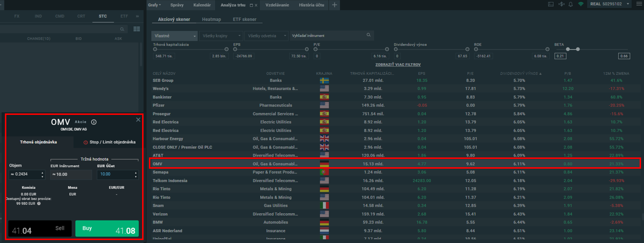 Dividendové akcie OMV spĺňajú nasledovné parametre: