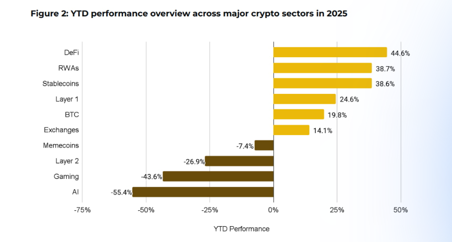 Dôležitým faktorom rastu sa stala regulačná jasnosť v Spojených štátoch, nové zákony o stablecoinoch a tiež zvýšený záujem inštitucionálnych investorov. Najviac pozornosti si vyslúžili sektory, ktoré prekonali priemerný výkon trhu a prakticky niesli kryptomeny vpred.