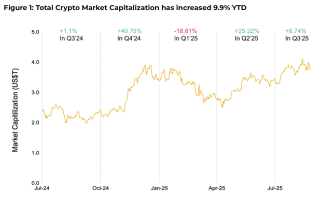 Kryptomeny vstúpili do roku 2025 so silným momentom, pričom celková kapitalizácia vzrástla medziročne o viac než 80 %, ukazujú údaj z TradingView. Podľa magazínu Finbold však prvý kvartál priniesol ochladenie nálady, keď trh zaznamenal pokles o takmer 19 %, aby následne v druhom kvartáli opäť nabral na sile.