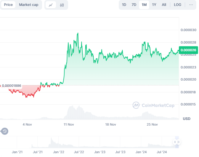 Pohľad na vývoj ceny Shiba Inu. Zdroj: CoinMarketcap